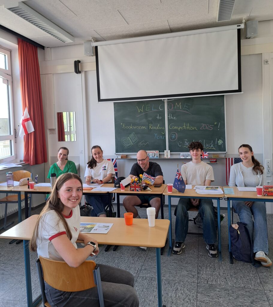 Nachdem im Vorfeld bereits die Klassenbesten von ihren Mitschüler(innen) im Englischunterricht gekürt worden waren, traten am 26. Juni 2025 alle Klassensieger gegeneinander an, um die Frage zu klären, wer der „Bookworm 2025“ werden würde. In angenehmer Atmosphäre haben sieben Schüler(innen) aus allen vier Klassen tolle Leistungen gezeigt und sich auf hohem Niveau miteinander gemessen. Folgende Schüler(innen) aus Jahrgang 7 traten an: