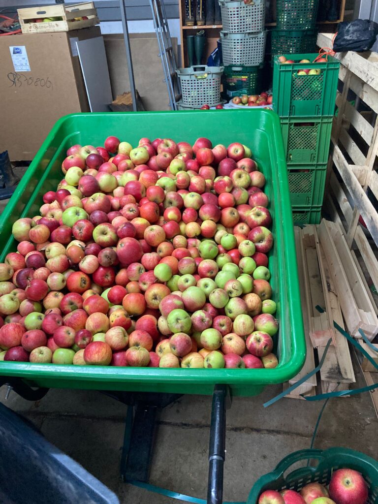 Am Sonntag haben wir die Äpfel zur mobilen Apfelpresse König gebracht und mehr als 200 l Saft erhalten. Er kann jetzt bei Theos Firma und beim Apfelfest am 07.10.2025 von 15:00 Uhr bis ca. 16:30 Uhr erworben werden.