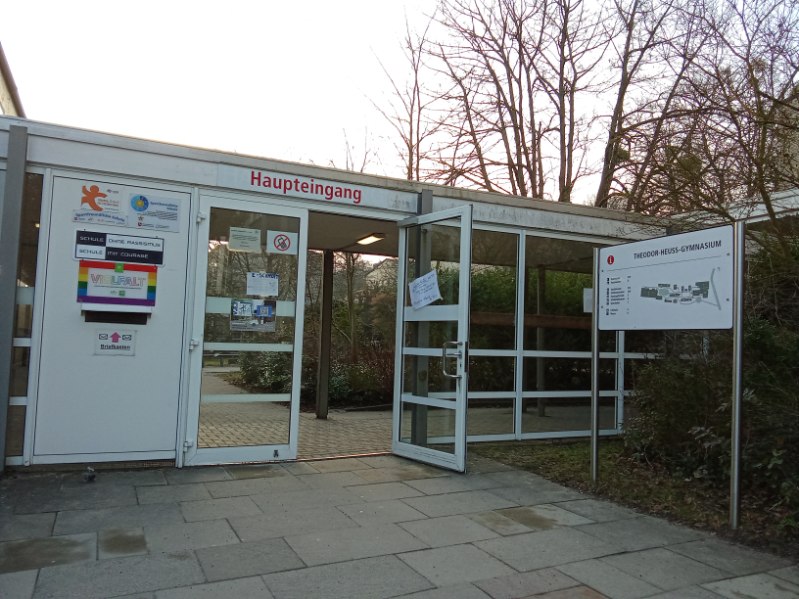 Am Morgen bin ich um 6:15 Uhr aufgestanden. Ich habe mich fertig gemacht und gefrühstückt. Um 7 Uhr sind wir zur Schule losgefahren. Als wir angekommen sind, gab es keinen Aufseher; das hat uns sehr überrascht, denn in Frankreich gibt es einen Aufseher und ein Tor, damit die Schüler die Schule nicht verlassen. Danach haben wir uns an der Statue von Theodor Heuss getroffen und die Lehrer haben uns die Schule gezeigt, welche sehr groß ist. Danach gingen wir zum Frühstück, wo die Austauschschüler auf uns warteten. Dort aßen wir zum Frühstück. Wir haben unsere Stundenpläne bekommen und dann war Pause. Sophia und ihre Freunde zeigten mir die Schule und brachten mich zum Musikraum.