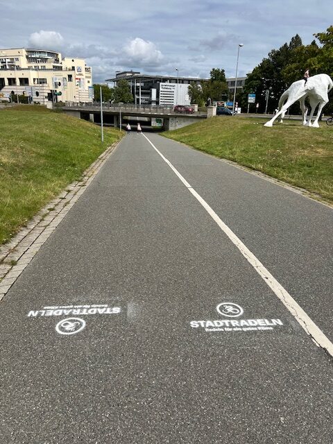 Die Fahrrad-AG hat in diesem Jahr weiße und blaue Logos der Aktion vor die Schule gesprüht – als kleine Erinnerung für euch. Nutzt entweder die Stadtradel-App oder tragt eure Kilometer hier auf der Plattform ein und sortiert euch dem Unterteam GY Theodor-Heuss > Klasse… zu. Und natürlich könnt ihr das Rad auch nach dem 13.09.2025 noch nutzen 😉
