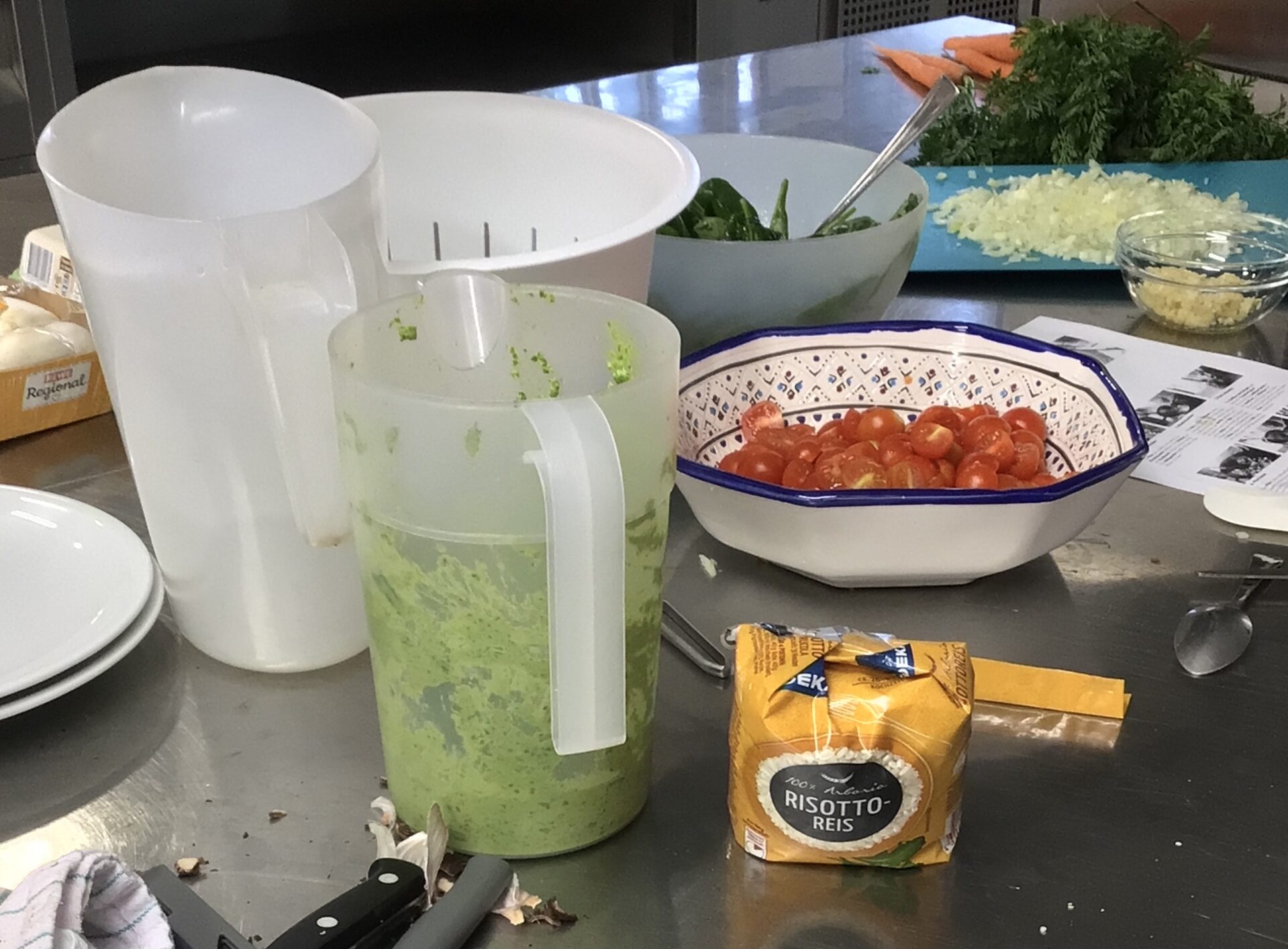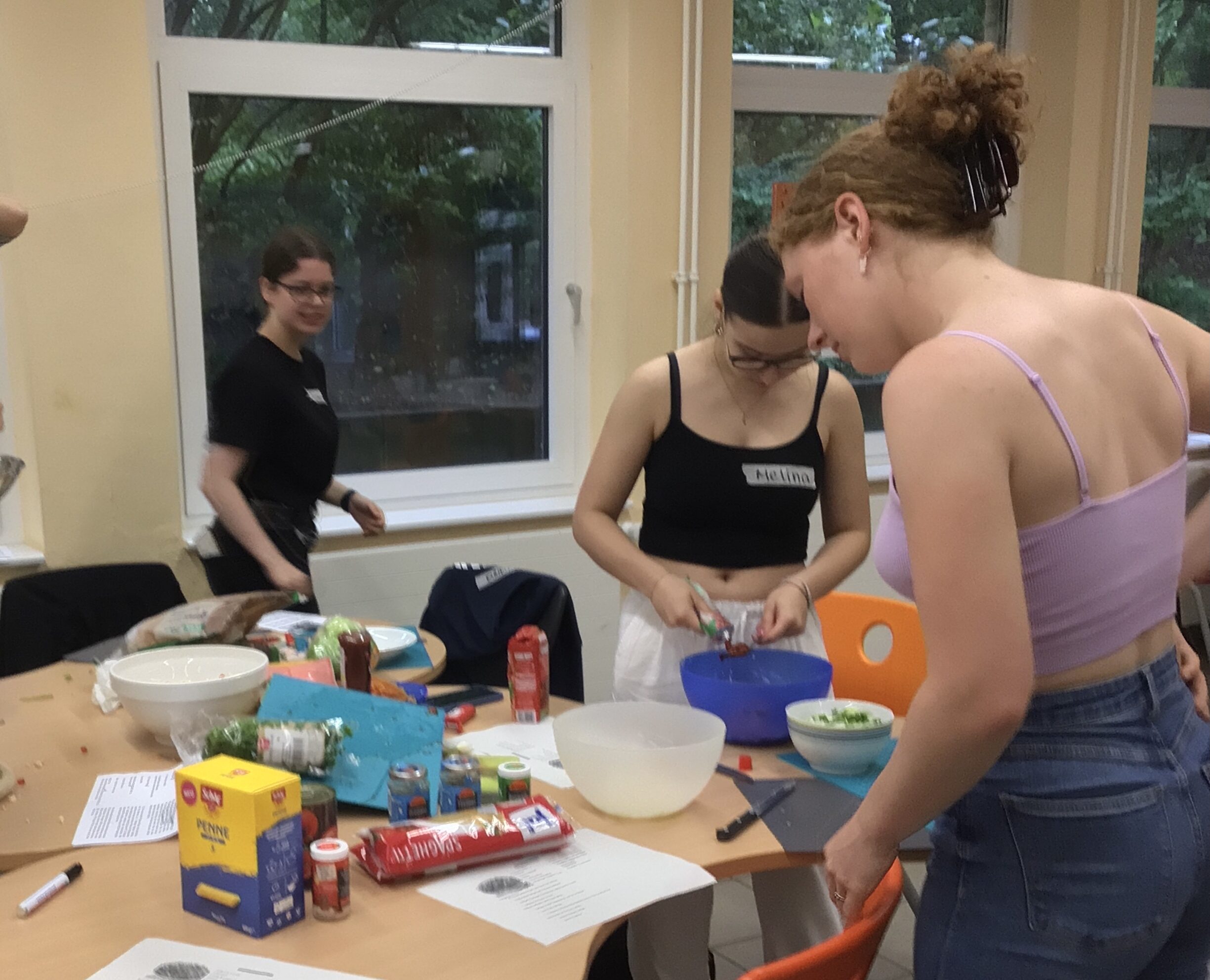 Im Projekt „Gesunde Ernährung“ lernen 22 SchülerInnen, wie man gesunde Alternativen zu verschiedenen herkömmlichen Gerichten zubereitet. Neben dem gemeinsamen Kochen und Backen frühstücken sie auch zusammen und lernen, wie man als Gruppe zusammenarbeitet. Das Ziel des Projektes ist es, sich gesünder und bewusster zu ernähren. Es wird von folgenden Personen geleitet: Frau Schlicht, Frau Dittrich, Emma Franke und Malene Hecht. (Geschrieben von: Ben, Joost und Zahra)