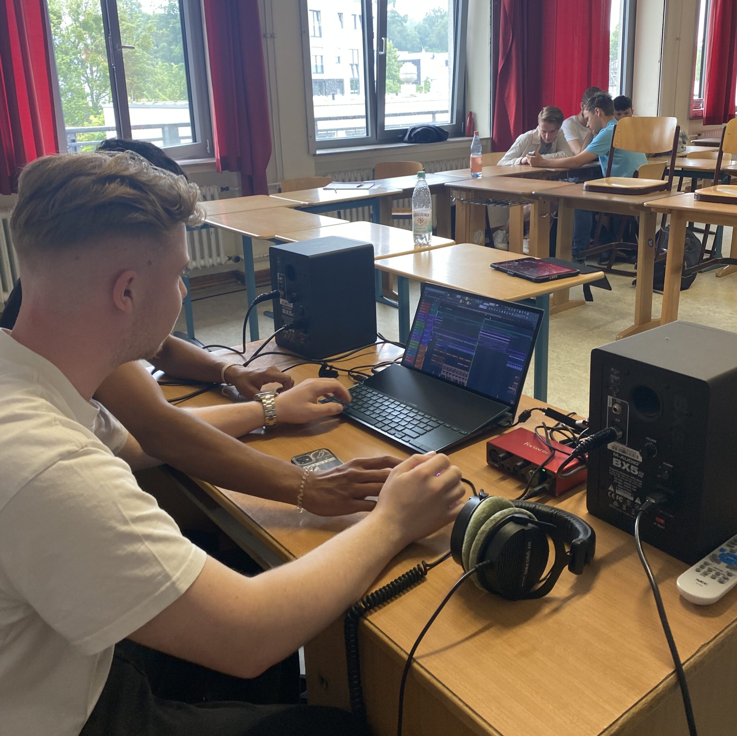 In dem Projekt „Musikproduktion“ arbeiteten die SchülerInnen unter der Leitung von den Schülern Osvaldo, Jason und Nico aus dem 11. Jahrgang mit Unterstützung von Herrn Petersen-Deuper an eigener Musik.